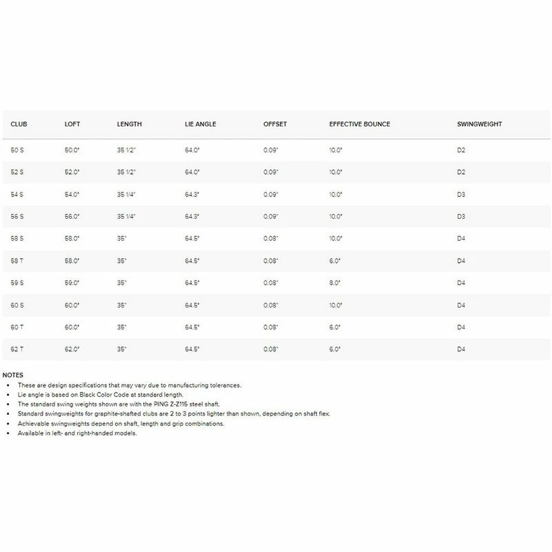 | Loft/Bounce | 50° Loft, 52° Loft, 54° Loft, 56° Loft, 58° Loft, 59° Loft, 60° Loft, 62° Loft |
