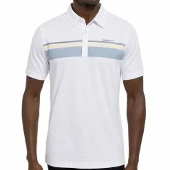 The TravisMathew Rocky Path Polo provides the perfect look to take you from work to the course with an updated chest stripe featuring a unique TravisMathew block logo. Shop TravisMathew and more at Worldwide Golf Shops!